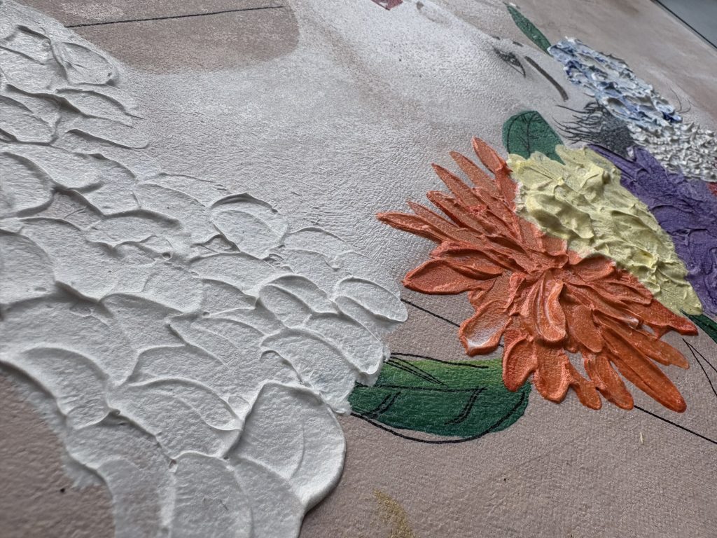 | Technik | Acryl auf Leinwand, Impasto-Floraltechnik |